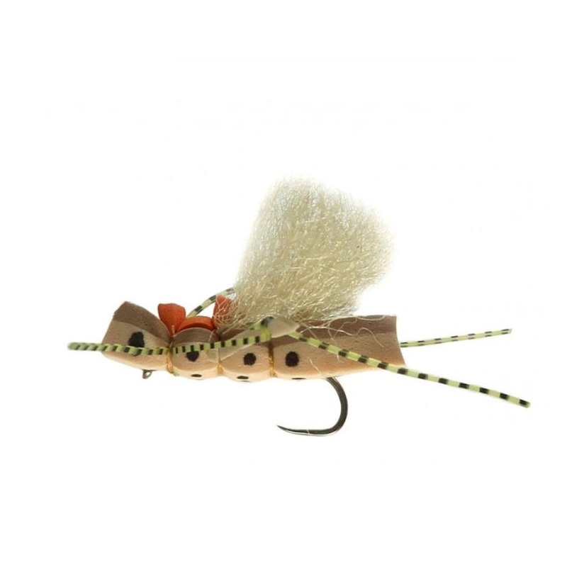 KB's Hop Zone Hopper from Yellowstone Fly Goods is a Fish Tales staff favorite for hopper/dropper setups and high floating dry fly fishing through fast water. This Foam dry fly features a generous synthetic wing, long micro barred legs and two toned stacke