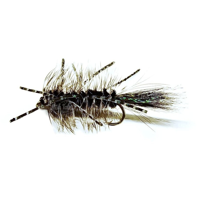 YFG Flies Black Yuk Bug - is it a freshwater streamer, or a buggy stonefly nymph, or something else? Whatever it is, fish lover to eat them! Barred rubber legs and a hackle wrapped body on this fly make for lots of buggy movement fish find irresistible.Bar