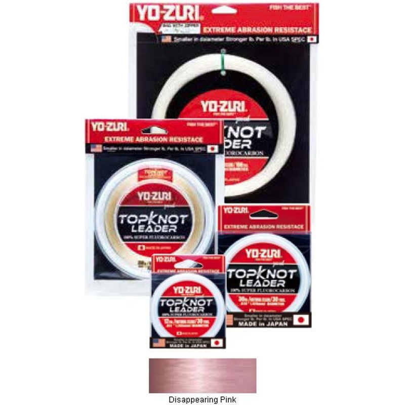 Yo-Zuri TK LD 100LB DP 30YD TopKnot Leader stays clear even after extended use, resulting in more bites!YO-ZURI TK LD 100LB DP 30YD TOPKNOT LEADER FEATURES:30 yds100 lb. TestColor: Disappearing PinkAbrasion ResistantShock ResistantSuper DurableThin Diamete