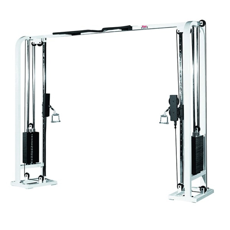 York Barbell STS Selectorized Cable CrossoverFeatures Polished chrome adjustable cable column for maximum exercise variety and smooth pulley adjustmentPulleys swivelPronated grip position chin-up bar 4200 pound tensile strength aircraft quality cable Two 2